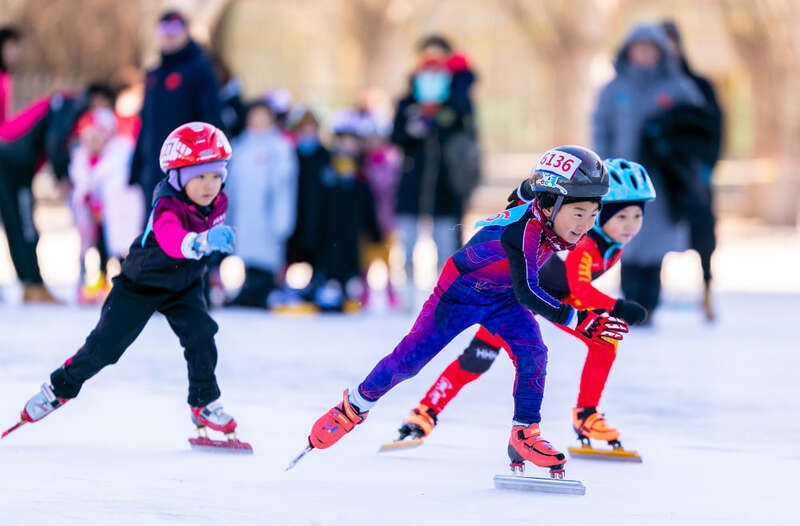 2022年1月15日,2022呼和浩特青少年体育俱乐部滑冰联赛在位于呼和浩特市的内蒙古师范大学举行。新华社发(丁根厚摄)