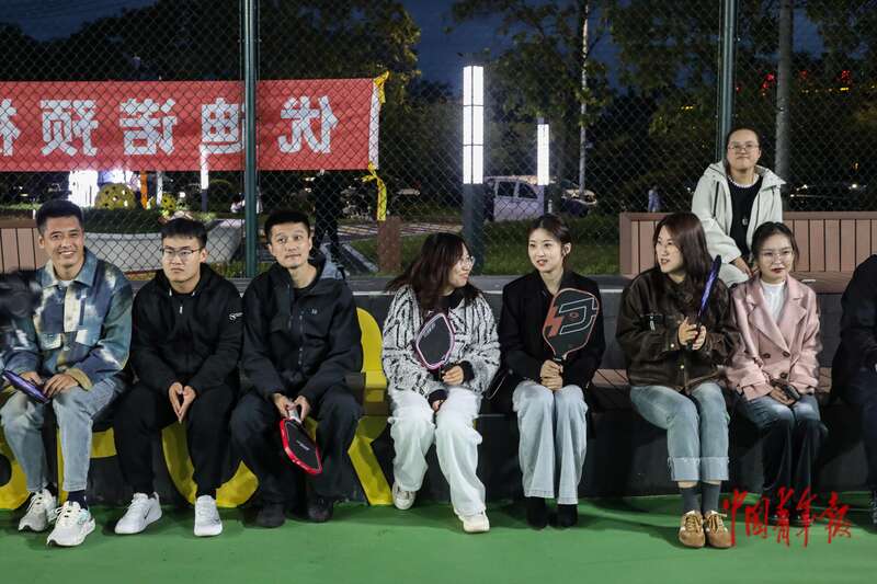 10月11日,辽宁丹东新区玉带河公园,参加匹克球主题交友会的年轻人们在球场聊天。中青报·中青网记者 孔斯琪/摄