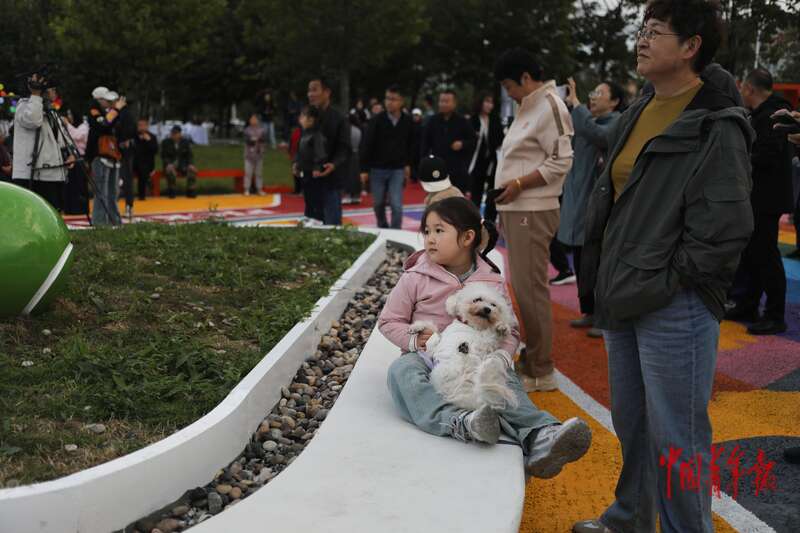10月11日,辽宁丹东新区玉带河公园,市民们在围观一场匹克球交流赛的开幕式。中青报·中青网记者 孔斯琪/摄