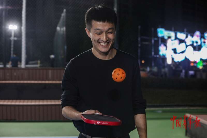 10月11日,辽宁丹东新区玉带河公园,前来参加匹克球主题交友会的年轻人小董在练习颠球。中青报·中青网记者 孔斯琪/摄