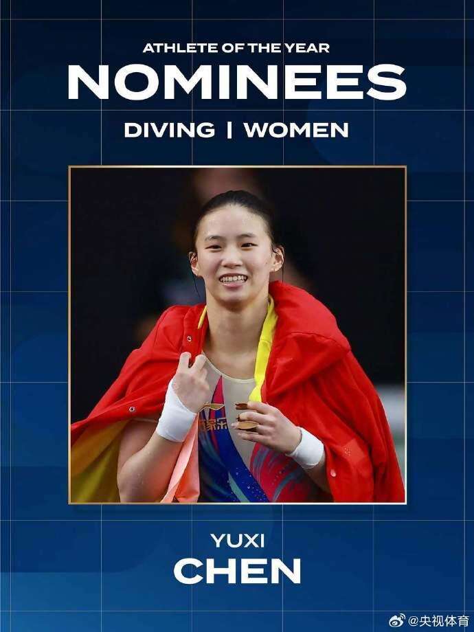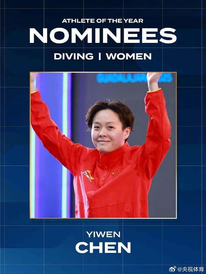 世界泳联公布年度最佳女子跳水运动员候选名单,中国选手陈芋汐、陈艺文入围。陈芋汐凭借在新加坡世锦赛斩获女子单双人10米台及混合团体三金的佳绩,成为奖项的有力竞争者。