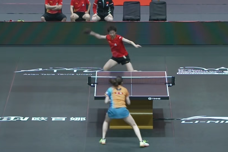 第二盘,孙颖莎11-9、11-5、11-7速胜张本美和,中国队总比分2-0领先。
