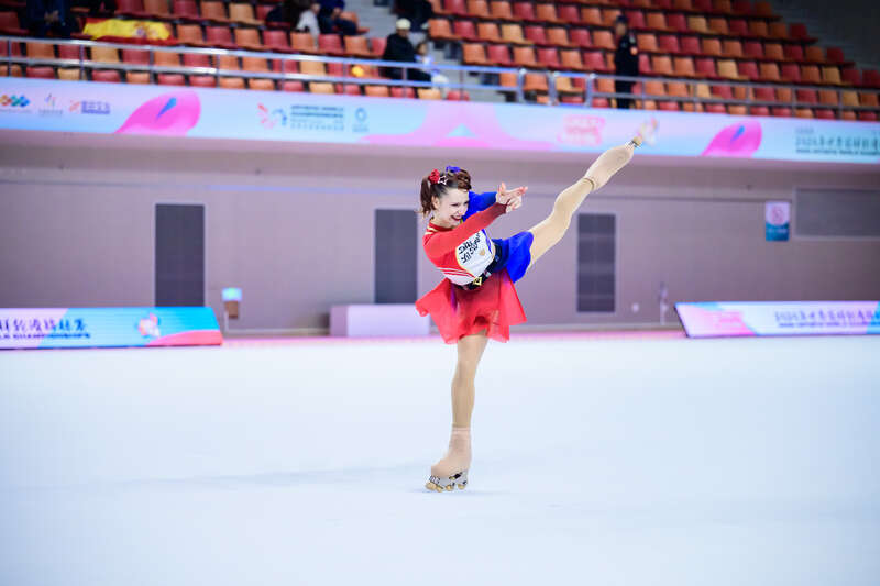 首场比赛是单排轮短节目比拼,赛场内气氛热烈。运动员旋转、跳跃的轨迹随光影流转,将“轮上芭蕾”的魅力展现得淋漓尽致。