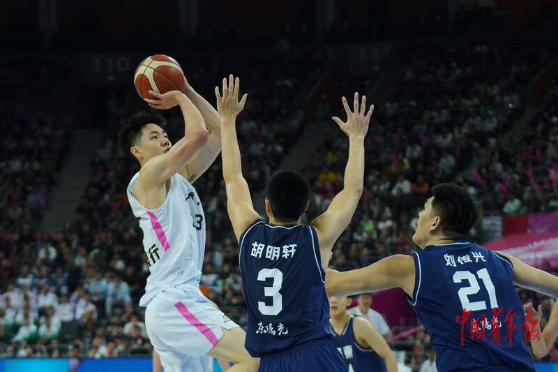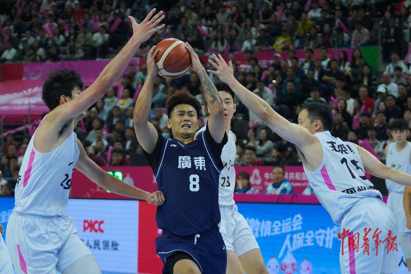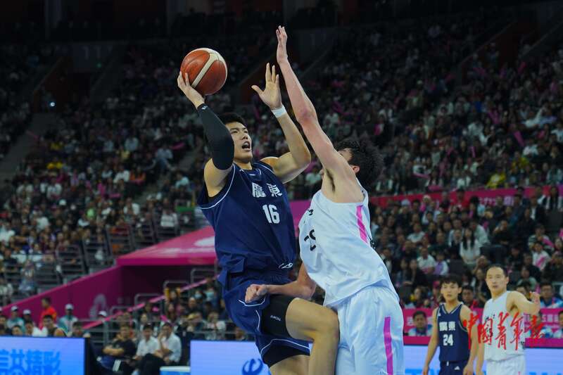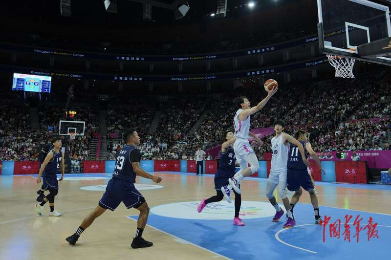 11月12日,广东东莞,东莞篮球中心,十五运会篮球男子成年组决赛,广东队沈梓捷(左)突破上篮。当晚的金牌争夺战,东道主广东队迎战浙江队,能够承载1.6万人的东莞篮球中心座无虚席,热情的球迷为两队队员加油呐喊。最终,广东队以101:65战胜浙江队,如愿夺得十五运会男篮成年组金牌。广东队此次夺冠,也是他们继山东全运会(2009年)、辽宁全运会(2013年)后,又一次夺得男篮成年组的金牌。中青报·中青网记者 田嘉硕/摄