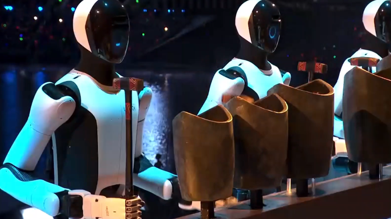 十五运会开幕式上机器人敲响青铜句鑃 图源自网络