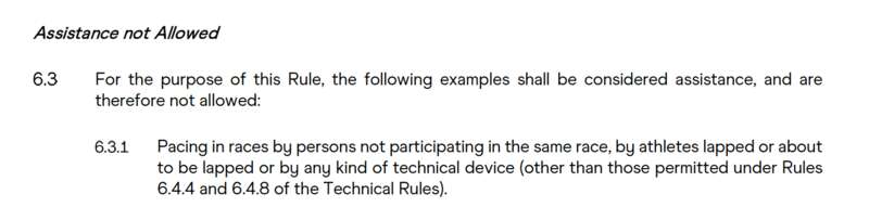 赛后成绩公告显示,来自云南队的蒋发坤与杨绍辉均因“TR6.3.1”被取消成绩。根据世界田联发布的《田径技术准则》,该条规定表示“由未参加同一场比赛的人员、已被套圈或即将被套圈的运动员,或任何形式的技术装置(除规则6.4.4和6.4.8所允许的之外)进行领跑”的辅助行为是不被允许的——这场十五运会男子10000米比赛云南队杨绍辉和蒋发坤的违规行为,也给观众带来了一节规则科普课。